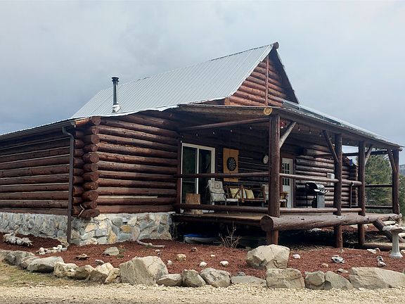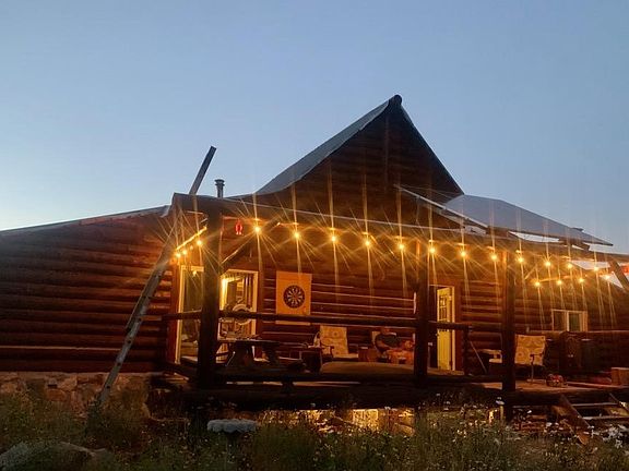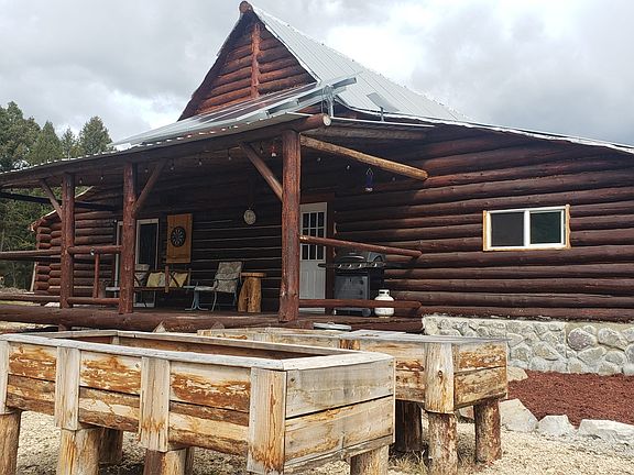 The main Log Cabin is separate/upstairs from the basement home. It has 22 feet ceilings at the peak. It sits on an insulated concrete forms over the basement home. There is a large main bedroom with the potential for an on-suite bathroom. Sliding glass doors from the bedroom to a large wrap around porch. Large living room and dining room are open with a view of the Mountains. Another large room for guest room off the living room. An area is already built for a spacious kitchen. Brand new windows throughout the upstairs for spectacular views. Spiral staircase leads to an open loft which overlooks the entire cabin. Sellers have installed a permitted septic system. There is an underground water tank which holds 660 gallons of water, plumbed to the house. Water is currently hauled in with water barrels from a nearby water source. Brand new generator in a covered shed set away from the house where it is not loud when using, 6 solar panels on the roof provide enough power for the house if minimal appliances are in use. On generator power, the entire house runs including appliances, TV's, computers. Leased propane tank at $110. yr. Starlink system is included which provides super high speed WIFI. Very large, landscaped yard. The yard sits against the natural forest which has abundant wildlife and can be enjoyed from the covered wrap around porch. The entire home was built from logs which sat on the property and were hand milled and finished on site. From your door access to miles and miles of mountains for hiking, four wheeling, mountain biking, snowmobiling, hunting and exploring remote locations.