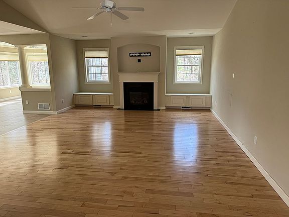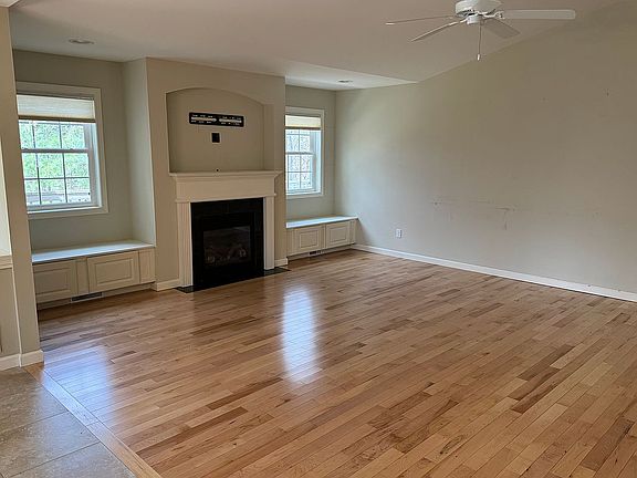 Highly coveted single-family home with one-level living, private lot, two-car garage, and conveniences of association living.  Spacious and open floor plan.  Tiled kitchen, dining, sunroom, and bathrooms.  Wood floors in family room, main hall, and second room.  Carpet in master bedroom and closet.  Master bedroom has walk-in closet and fully tiled shower with bench.  Second room has French doors, closet, and built-in desk, shelves and cabinets.  Could be used as a bedroom, office, or sitting room.  Gas fireplace in family room.  Granite countertops, stainless appliances, first-floor washer and dryer.  Bright and warm sunroom.  Expansive deck with stairs to lawn.  Central air.  Window treatments throughout.  Irrigated lawn and LeafGuard gutters.  Low association dues include lawn, snow, trash, lawn fertilization, and exterior home insurance.  House is less than 10 years old and has been gently lived in by retired couple who were sole and original owners.  Unfinished basement is footprint of entire house/garage and has egress window - can easily be finished for additional living space, with plenty of storage still available.