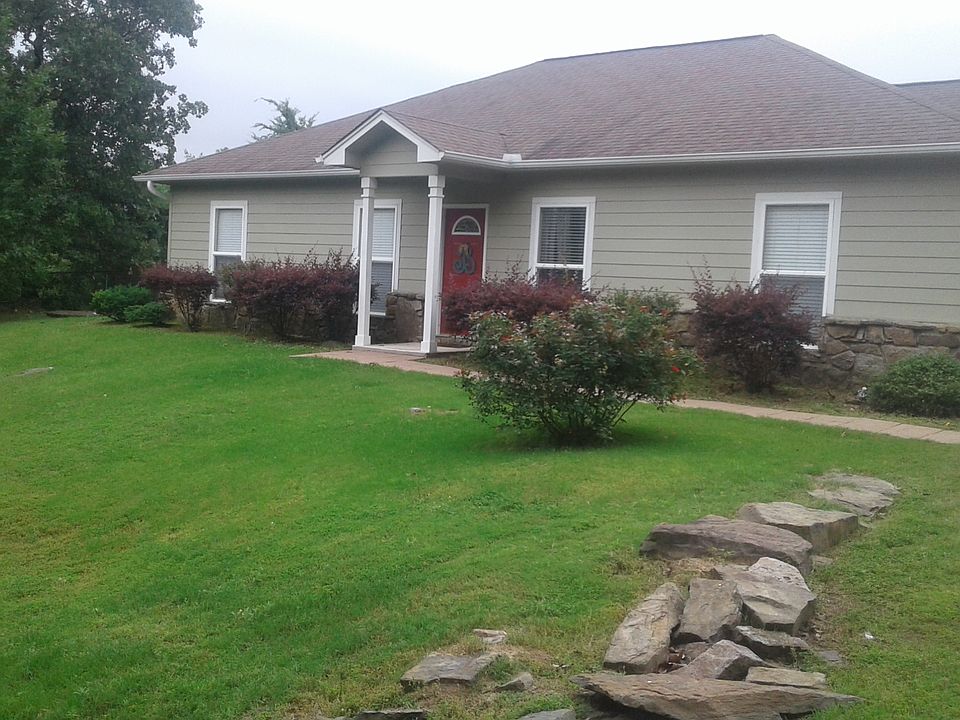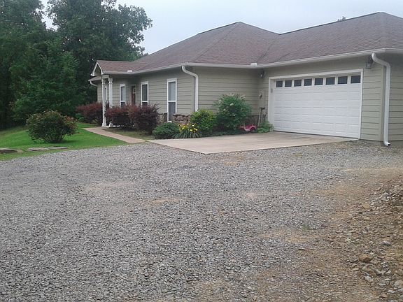 Own this beautiful piece with hilltop view!! Nature surrounds you on all sides. Inside are ten foot ceilings and crown molding in the living room, nine foot ceilings everywhere else. Open split bedroom floor plan. Two outside storage buildings connected by a covered porch. Enjoy the beautiful scenery on a covered patio out back with a fenced in back yard. A new cellar recently put in 3/2017. Hardi board siding with a two car garage attached.