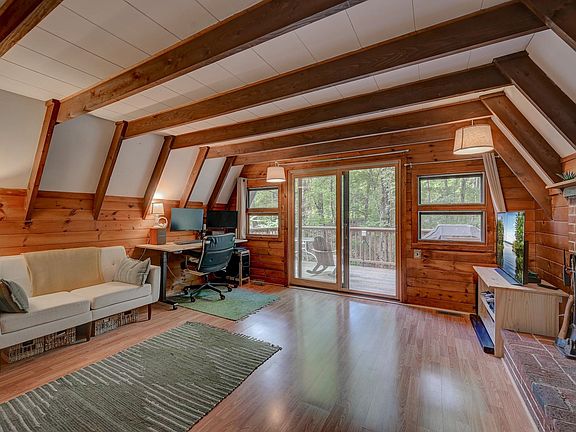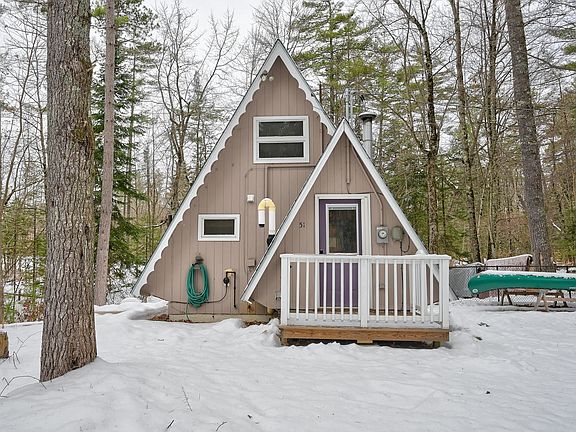 The moment you step into this enchanting and cozy A-frame, you will want to make it yours! All the rustic and mountain vibes are here and perfect for those who love the minimalist lifestyle. It’s no surprise A-frames are trendy, and this home is no exception. Just a short walk around the corner from Conway Lake, this home is waiting for your new memories to be made. Enter the front door into a bonus mudroom area, just right for storing your skis and hanging your parka at the end of a day on the slopes. The kitchen is galley-style for maximized counter space and cabinet storage. The living room is spacious and bright, with sliding glass doors out to aback deck with peaceful views to the wooded backyard where you’ll find yourself soaking up early mornings with coffee, listening to the birds. Step off the deck and into the small fenced yard, convenient for your four-legged friends! A wood stove insert on the brick hearth will effortlessly keep you toasty during the cooler months. A ¾bath with stackable washer and dryer adds to the convenience of having everything on your list! Upstairs are both bedrooms, one on either side and a small landing in between for storage and closet space. Have you been dreaming of the perfect mountain cabin getaway? This is the one!