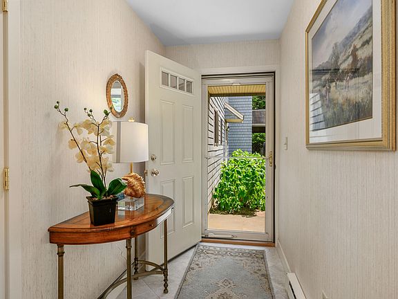 Spacious Sea Pines condo with a great floor plan and a private garage! The living/dining combo enjoys a wood-burning fireplace, built-in shelves and cabinets, and a slider to the large, composite deck. Easy 1 floor living with the main bedroom and en suite full bathroom, and laundry on the 1st floor! The 2nd bedroom and another full bath with a walk in shower are also on the 1st floor. Upstairs is a 3rd bedroom accessed via a straight open-tread stairway. The entire condo was renovated in 2013 including all windows, skylights, and the slider. Tile floors in the kitchen and bathrooms. Lots of storage with attic access upstairs. Association clubhouse, outdoor pool, and mailboxes are close to Landing Ln. Association amenities are included in the condo fee: beautiful outdoor pool, clubhouse with small exercise room, meeting room, new tennis and pickle ball courts, playground, and 1100' of private assoc. beach on Cape Cod Bay where you can moor a boat and keep a kayak! Gradual path to the beach too! Near bike trail, shopping, and restaurants. Being sold fully furnished with some exclusions. Please see more details in the pictures and video coming soon. Agents/buyers to confirm details.