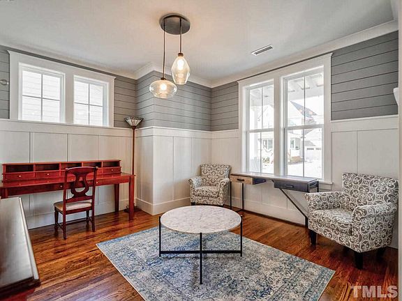 Stunning Saussy Burbank home in Briar Chapel! A covered front porch leads into this modern home with upgraded finishes, including shiplap walls and custom light fixtures. Office/DR. Kitchen features floating shelves, quartz countertops, farm sink, gas range and opens to spacious dining area and family room with gas fp and built-ins. 1st floor bedroom/full bath and drop zone. 4 BR + Bonus up, including spacious owners' suite. Amazing screen porch overlooks large fenced-in backyard and natural tree buffer.