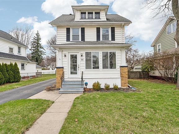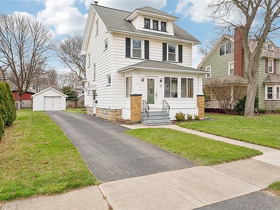 Welcome to this delightful 3-bedroom home. Fresh modern paint colors complement some of the timeless accents, creating a warm and inviting atmosphere. The first floor features a spacious living room with beautiful hardwood floors, a formal dining room with a charming built-in under window bench, kitchen with vinyl flooring, and a convenient half bath. Upstairs, you'll find three spacious bedrooms, a full bath, and a walk-up attic—ideal for storage or future possibilities. Enjoy your morning coffee on the enclosed front porch, and take advantage of the full basement and detached garage for all your storage needs. Located close to amenities, the Genesee River, Seneca Park, and the Seneca Park Zoo, this home offers both comfort and convenience. Delayed Negotiations begin Monday April 14th at 12:00 pm