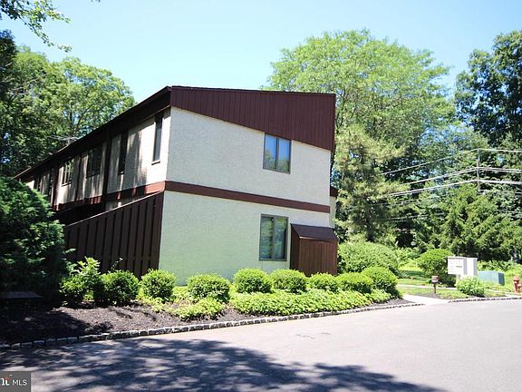 Village Mill condominium community, nestled amidst the woods and backing to the LHT for hiking, jogging, nature walks and biking! This two bedroom townhome features a stucco style exterior and a premium location backing to woods and trail. This home features center foyer with an updated half bath & basement & 2nd floor access, a full kitchen with oak cabinets, granite counters with a deep stainless sink, all appliances including, a dishwasher, self-clean stove, refrigerator, handy drop down table to eat-in and a new built-in microwave. The dining area, with kitchen access features a decorative chandelier, wooded views and adjoins the great/living room with wood burning stove and sliders to rear partially fenced, bluestone patio with Bilco access to the unfinished basement. There are hardwood floors & crown moldings throughout most of the first level. The second level features two bedroom suites both with bathroom access and closets with organizers & mirrored sliders and both bedrooms have wooded views. The two half bathrooms on the 2nd floor, share a tub/shower room. There is newer wall to wall carpeting throughout the second level. The second floor laundry closet is complete with stackable front loading washer and dryer. Newer heat/AC pump.