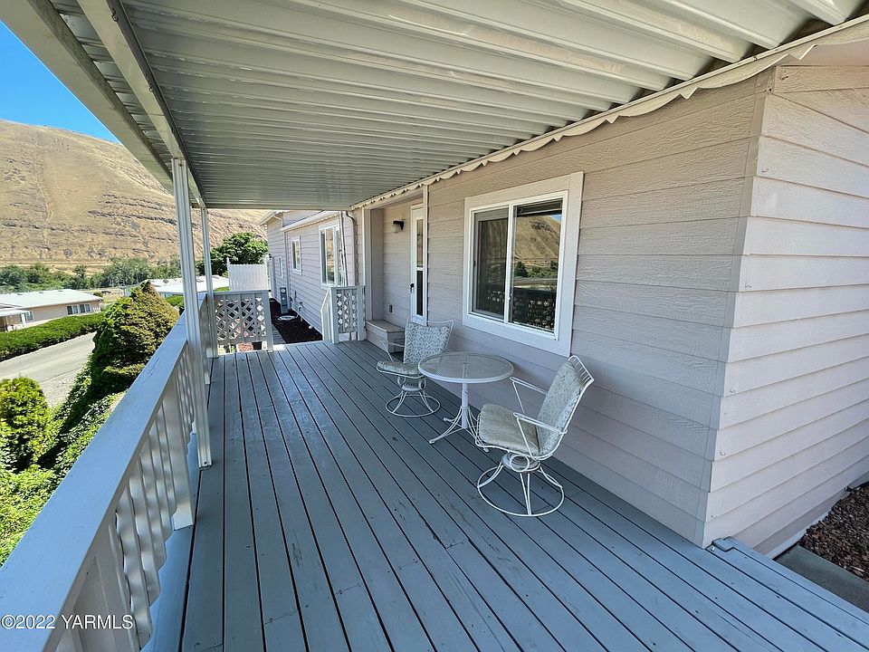 Beautifully maintained 3 bedroom 2 bath home with sweeping views of the Valley from a large covered deck in a 55+ park. The main bedroom has double closets, an on suite bath, vaulted ceiling and is on the opposite side of the home from the other 2 bedrooms. The vaulted ceilings continue into the spacious living room. You'll find tons of storage throughout the house but very little dust thanks to the electronic air filter. The garage has a door for a car, door for an RV and also a shop.