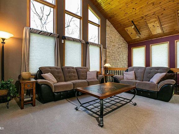 Youâre sure to melt into this updated contemporary home, graciously set back off the asphalt driveway on a 2.43 acre lot in Presidential Manor. Fabulous foyer invites you into the home, featuring living room with massive windows to the vaulted ceilings, railing overlooking lower level and stunning 2 story stone fireplace. Office and ½ bath in this area. Dining room opening allows viewing the stonework and has patio doors to maintenance free deck. Enter the kitchen with gorgeous granite counter, a breakfast bar, pub table area, walk-in pantry and pet or desk area. Laundry with closet can be closed off to minimize any noise. Master suite is on upper level and recently updated to show off a new walk in tile shower with double shower heads, double sink and makeup vanities with Cambria Quartz. Two more bedrooms and full bath complete this level. Newly installed wood stairwells up and down to walkout level where there is a huge family room, open landing area, playroom, full bath and yet another garage. Main garage is finished and is heated. Level front yard and secluded back yard allow you to be one with nature. Roam through the mature trees and wildlife may appear. Recent updates include interior mission style doors, shingles, furnace, central air unit and enclosing porch with double hung windows. HSA Warranty by Seller for 12 months after closing. Sellers are currently working from home. Set up your private tour after viewing Matterport tour carefully. NO Showings until May 11, 2020 per Seller. Seller is related to listing agent.