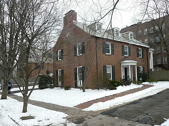Douglas Orr designed 1925 brick Colonial has been fully updated. Classic facade with an elegant, centrally located portico with white columns brings you to the central entry foyer. At the left there is a large west-facing Living Room with wood-burning fireplace, recessed lights and built-ins. Recently remodeled kitchen with contemporary white cabinetry, black granite counters and stainless steel appliances opens to the Dining Room that has original corner built-in cabinets and sliders to a private 3-season porch. The large Master Bedroom features a dressing room, remodeled bathroom with radiant heated floors, and sitting area with wood-burning fireplace. This level has another bedroom, full bathroom and a suite with bedroom / TV room / sunroom. The upper level has 2 more bedrooms, full bathroom and ample storage. Updated mechanicals with split central AC system. 2 car detached garage. Fenced-in yard. Walking distance to local markets, Yale, downtown.