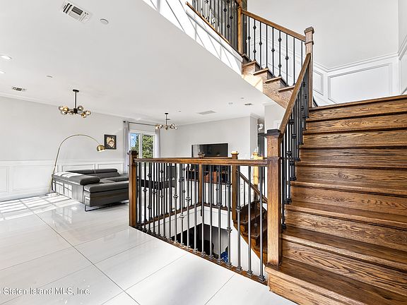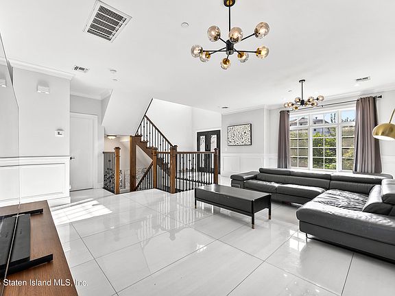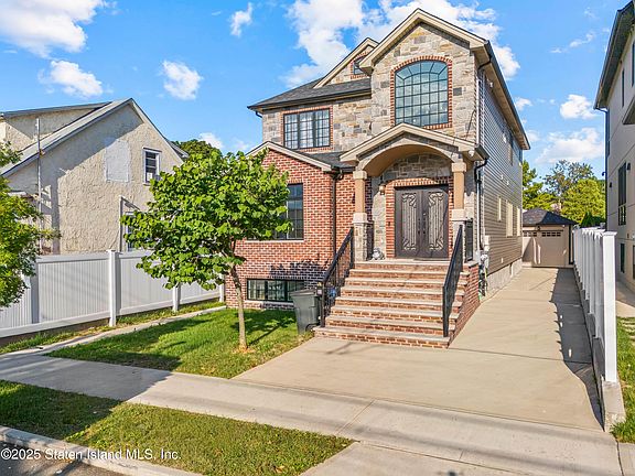 Stunning 2020 custom-built two-family Colonial offering 3,000+ sq. ft. of luxury living. The impressive brick and stone facade with wrought iron entry opens to a dramatic double-height foyer with sun-filled windows and an elegant staircase. The first floor features dual living rooms with radiant-heated Italian porcelain tile, coffered ceilings, custom wainscoting, a gas fireplace, and an open chef's kitchen with granite countertops, stainless steel appliances, and Pella windows. Sliding glass doors lead to a deck and large backyard. The home offers 4 spacious bedrooms and 4.5 bathrooms, including a master suite with spa-like shower. The fully finished basement includes a family/rec room and recreation room. A separate 300 sq. ft. studio apartment provides rental income or extended family options. Additional highlights include a detached garage, 6-zone baseboard heat, 3-zone central A/C, and energy-saving solar panels. Conveniently located near schools, parks, and shopping, this home is the perfect blend of elegance, comfort, and practicality!