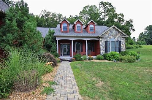 Exceptional executive ranch with 4 garage stalls sited on just under 2 acres of profesionally landscaped grounds. The open concept floor plan boasts 9' ceilings,large welcoming tiled foyer, walnut engineered wood flooring, stone fireplace and a beautiful granite countered gourmet kitchen for high powered cooking and entertaining, Elegant master suite offering tray ceiling, large windows and 2 walk-in closets.The master bath is fully tiled with seperate soaking tub and tinted glass shower stall along with his and hers vanities. Additional ammenities include a custom designed patio,fenced back yard,Goshen stone walls,screened porch,dog kennels and 2 bonus rooms for expansion capabilities. Great care and attention to detail went into the design of this home. A "Must see" property.