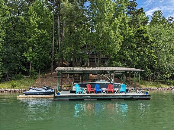 One-of-a-kind Lake Keowee waterfront home, located in Keowee Key (a gated, golf and tennis community offering a wide range of amenities). This lake house is unexpectedly private and built closer to the shore than most. The property is located in a spacious, deep-water cove that’s quiet, but close to big water. The bright and open floor plan, with floor to ceiling windows looking out to the lake, effortlessly blends the indoor and outdoor spaces. It also has a master bedroom with full bath on the main, as well as a half bath for guests. The lower level has 3 guest rooms with 2 full baths and a living area. Large windows throughout the home, flood the interior with natural light. The lake views can be enjoyed from almost every room, allowing you and your guests to soak up the beauty of Lake Keowee and its shores. This great lake house floorplan is enhanced with lots of updates: a newly updated kitchen, refinished wood floors on the main, new interior paint throughout, newer HVAC systems (main floor replaced 2018 & lower level 2021) as well as new exterior paint. Expansive decks on both the upper and lower levels provide great entertaining spaces; and room to relax and take in the sights and sounds of the lake. For those chilly nights, there’s a fireplace in the main floor living room as well as one outside on the upper deck. This low maintenance property has 111 feet of rip wrapped shore line; as well as a dock (28’x24’) with covered slip and lift. It’s the perfect place to entertain guests and host summer gatherings; or, just step away from the craziness of everyday life. In addition to enjoying the sights and sounds of the lake from this great waterfront home, Keowee Key offers an array of recreational activities for its residents. Golf enthusiasts can play the pristine golf course, while tennis and pickleball players will find top-notch facilities to enjoy. There is a state-of-the-art fitness center that offers a variety of classes in addition to a full scope of equipment. The club also has great dining and social offerings that make this community a wonderful place to live.
