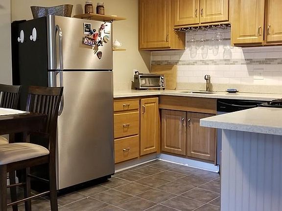 Rare 3 bedroom END UNIT condo in popular Ledgmere Country condo complex. Modern Kitchen with solid tops, small breakfast bar, SS appliances. Dining area with slider to private tranquil patio. Large sunny and airy Living Room with vaulted ceilings, wall of windows with wood blinds. 1st level bedroom and updated tiled full bath w/ tub/shower unit. Updated master suite features cathedral ceilings/fan, luxurious master bath with tiled shower & glass door and a huge master closet. The main levels are entirely hardwood flooring. Finished lower level carpeted bonus room is usable for FR, office, work out area. Also includes laundry, storage, and mudroom entrance. Single car garage with storage. This end unit can fit two parked cars in front plus garage. Gas Heating, AC and hot water replaced in 2015.