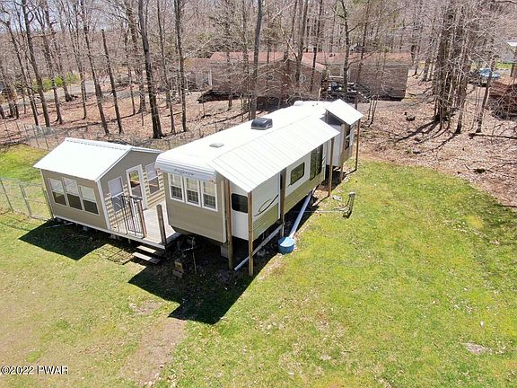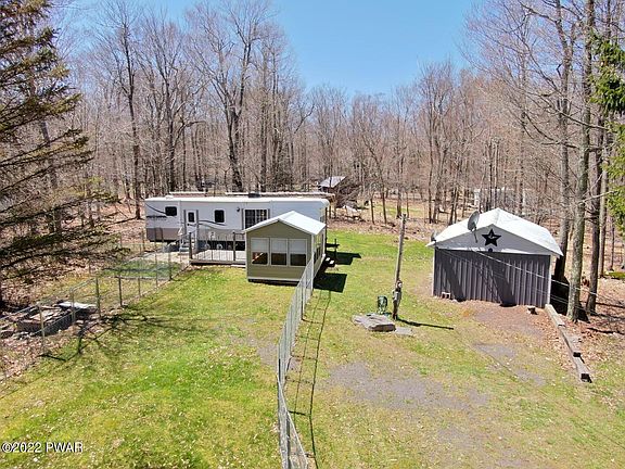 At an elevation of 2100 feet above sea level, high in the Pocono Mountains sits a beautifully manicured double lot offering .56 of an acre to relax and enjoy the days. A 2011 Park Model Bridgeway trailer provides 2 bed rooms, a full bath, galley kitchen and combined living dining area, all complimented by a spacious deck and additional sun room and large fenced yard. An additional utility building offers an additional area for storage or work area. Pocono Ranchettes is a 4 season community providing road maintenance and garbage disposal and is conveniently located close to numerous recreational areas, game lands and parks. Gouldsboro State park to the West, Promise Land State park to the North, Lake Wallenpaupack to the North and Delaware State forest to the East., Beds Description: 2+Bed1st, Baths: 1 Bath Level 1