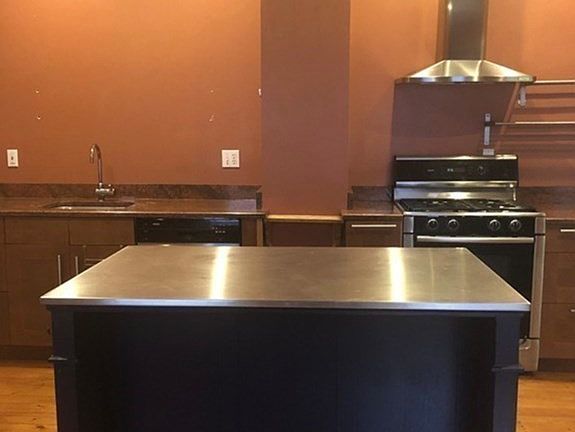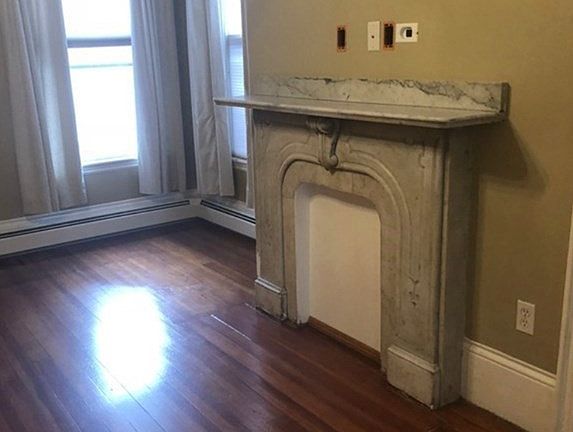 Such a cool space! Featuring classic black and white tile in the lobby. Enter into a formal living room, with original marble fireplace, high ceilings and floor to ceiling windows. There is a second space to make your own, ever think you could have a dining room in East Boston? Eat in kitchen, featuring chef's kitchen, stainless steel appliances, dishwasher too! Custom center island perfect for entertaining. Large bedroom off kitchen, with washer dryer. That is right designated laundry space in unit. Cats and Smaller dogs ok. Located in the historic Eagle Hill area of East Boston. Flexible lease terms!