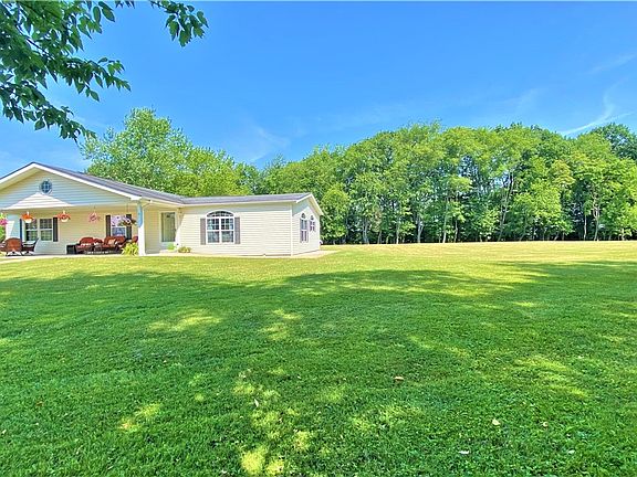 WOW...this home is IMMACULATE inside and out! Situated on a level 1.8 acre lot with public water and sewage, this manufactured home on a block crawl space (vented with cement floor) could be yours! Tucked back from Morningside Rd with access to the huge garage that can hold 6 cars. A covered breezeway offers shade and is great for relaxing, grilling or entertaining overlooking the gorgeous yard! Three bedrooms, 2 full baths, including an owner's suite with a full bath that includes a soaking tub and separate shower. The light and bright living area is open and spacious with a stacked stone accent wall. The paved driveway offers ample parking. Avella Community Center nearby for extracurricular activities.