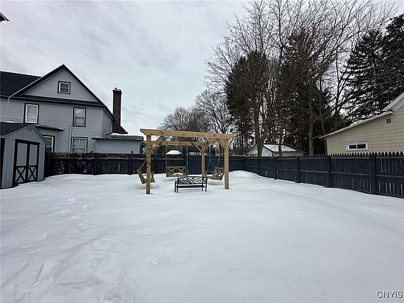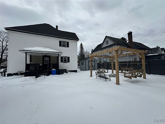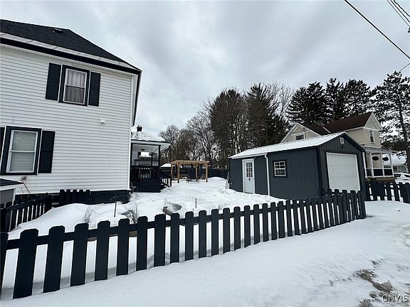 Are you looking for that new home that you can move right into then look no further. The work has been done in this village of Ilion home. The home features a formal dining room with breakfast bar and beautiful tray ceilings, an eat in kitchen, nice large living room all with updated flooring. There is a back hall mud room area plus a half bath all on the first floor. The second floor features the 3 bedrooms plus the full bath with laundry area. There is great attic space for storage plus the basement. The roof and furnace are approximately 4 years old. Updated Electric and plumbing. Relax on your covered front porch or rear deck. You will love the outdoor storage there is a 9X7 shed along with a 20x12 garage with electric plus a gazebo with 3 swings so that you can relax and unwind around the fire pit. The backyard is also fenced in and has 2 raised bed garden areas. What are you waiting for make this your new home.