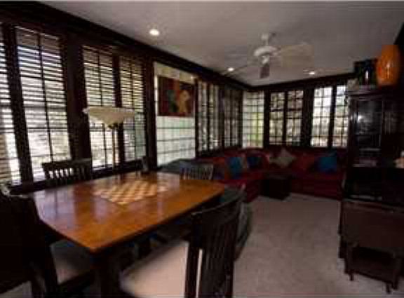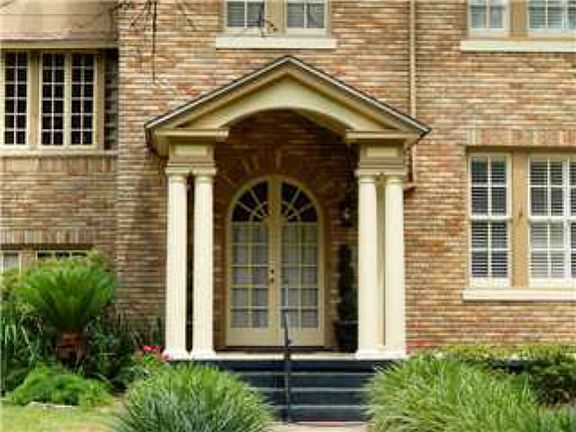 Spacious rooms separated by multiple sets of French doors. Wood burning fireplaces, custom built-in cabinets & storage, a den/media room on the landing w/3 walls of windows. The kitchen has a pantry, eat-in banquette w/granite top & granite counters, an island, abundant cabinetry. The master has an attached bath, 2nd bedroom has 2 closets, 3rd has own balcony/deck. Master, living, dining & sun room have oak floors refinished 5/2015, roof replaced w/architectural shingles 2012,PER SELLER.
