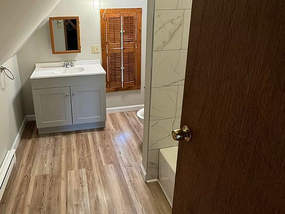 Fully renovated apartment with a unique layout offering 2-3 bedrooms pending your needs. This apartment features 1.5 baths. All new modern finished throughout, including quarts, new vinyl flooring, tile shower, backsplash, etc. This apartment features a full finished upper level commonly used as a "master bedroom" with a full bathroom upstairs as well. Half bathroom downstairs, along with a bedroom a dining room, and full living room. Apartment feature a front balcony. Apartment is electric and gas for utilities. Off street parking. First month and security upon signing. *This property is a location gem! steps from center street. Do not miss this opportunity* Tenant pays for utilities. Landlord pays sewer/water.