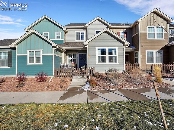 Lovely, one-owner west side townhome in coveted Gold Hill Mesa. Open-concept main level has beautiful, low maintenance wood floors, gorgeous quartz kitchen counters and a large island, marble tile backsplash, stainless steel appliances and gas range oven. Light and bright with neutral colors and high ceilings. Upstairs, the master bedroom boasts views of Pikes Peak from its window, has a spacious walk-in closet, and has an en-suite bathroom with double vanity, tile floor, and beautiful tile shower. There are two more bedrooms upstairs, with their own full bath, and also a conveniently located laundry room. High efficiency furnace, air conditioning, whole house fan, and an energy-efficient tankless hot water heater. There is handy under stairs storage, and the garage is fully insulated and drywalled. Enjoy sunsets on your adorable, private west-facing front porch. You will love the maintenance free living in this fantastic community with an exercise room, community center, and pocket parks throughout--not to mention the community concerts and events! You are only minutes from downtown, Old Colorado City, Bear Creek Park (and the dog park!), shopping, and schools. This is west side living at its finest!