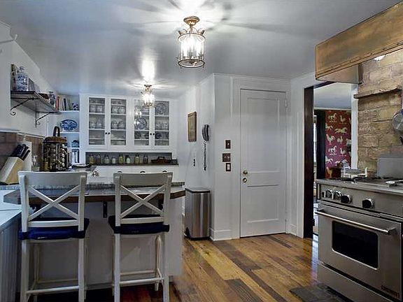 SOUTH FACING WITH STONE FRONT ANTIQUE RENOVATED AND RESTORED ON EXCEPTIONAL OPEN, ROLLING PROPERTY WITH STONE WALLS AMIDST GRAND ESTATES ON A CHARMING COUNTRY ROAD. GREAT WHITE KITCHEN WITH GRANITE COUNTERS, GARLAND STOVE AND ANTIQUE BARN BOARD FLOORS. LIVING ROOM WITH DOOR TO EXPANSIVE DECK. CHARMING UDPATED COTTAGE WITH A BEDROOM, LVING ROOM W/FP, WETBAR & BATHROOM. PLUS THERE IS A HEATED BARN.