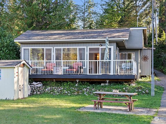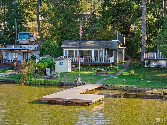 "We thought we were just having fun, but we were really making a lifetime of memories!" is the mantra of the owners of this prime Haven Lake retreat! This rare opportunity features 3 no-bank lots with 123' of waterfront, a charming 1 bedroom, 3/4 bath main house, & a cozy 2-bedroom bunkhouse (no bath)—perfect for overniters! With 2 docks, a 2-car garage that's housed a pristine Maxim boat, expansive decks, a relaxing hot tub, a gas fire pit, & room for an RV, it's the ultimate lakeside getaway. Whether you're into boating, jet skiing, kayaking, fishing, swimming, or simply soaking up the serene surroundings, this vibrant community has it all. No HOA! Available for the first time in 30 years—don't miss out! 15 minutes to Belfair/shopping.