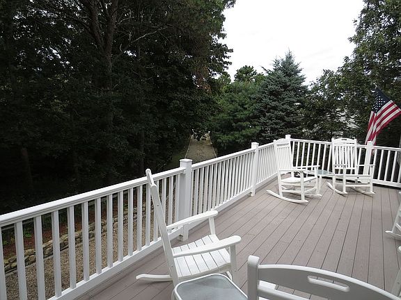 Hidden at the end of a driveway sited on a private wooded lot in the Heart of Hyannis Harbor is this amazing contemporary Cape with so much to offer. The upon entering the main floor w/open expansive floor plan, you will be surrounded by natural light that pours in through the oversized windows. The living area has 15-foot ceiling adding to the open & soothing feel of the house. There is a center gas fireplace for those beautiful fall evenings. The kitchen is a chef's kitchen w/ custom cabinets SS appliances & plenty of counterspace including a breakfast bar. The primary bedroom is on the main floor with a spa like bath, large walk-in closet & sliders that lead out to a deck. The 3rd level has an additional sitting area, 3 generous size bedrooms w/ a full bath. The lower level completes the house a bedroom, sitting area/office space, full bath, large area perfect to prepare for grilling, w/ a secondary refrigerator, prep sink & cabinetry. The house has more, central a/c, Nest system, & town sewer! The location is prime close to Veterans Beach & Kalmus Beach, close to boats Nantucket, and walk to to top waterfront restaurants. Move in ready for you to enjoy.