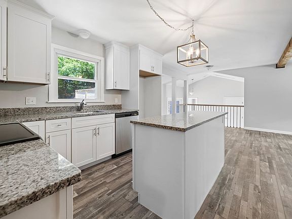 - Features: Flooring - Laminate, Countertops - Stone/Granite/Solid, Kitchen Island, Cabinets - Upgraded, Open Floorplan, Remodeled, Stainless Steel Appliances, Lighting - Pendant