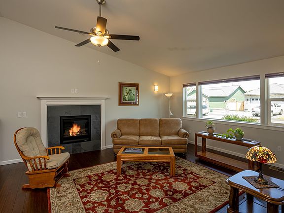 Beautiful home in prime location. Walk to gym,coffee shop and dining. Custom features include hardwood and slate tile floors, open floorplan, light and bright with vaulted ceiling. Living room boasts a gas fireplace and picture windows. Gourmet kitchen with stainless steel appliances, granite counter tops and bar. Indoor laundry room, spacious bedrooms and luxurious jetted bathtub. Large pantry and plenty of storage. A gardener's dream yard with fruit trees, vegetables and flowers. Mountain views and an oversized finished two car garage too! House backs up to common area walkway. This is the home you've been waiting for.