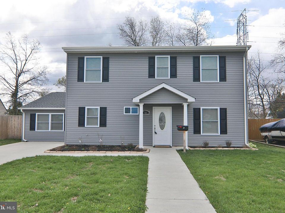 Backing to trees and a small creek, this recently expanded Pennsbury home has the best of both worlds: the fresh appeal of new construction with the charm of an established neighborhood in a great school district. Now featuring four bedrooms and two full bathrooms, new, neutral paint is just the beginning. From the covered front door entrance, enjoy brand new flooring and detailing that carries through every room, including new carpeting and ceiling fans in the two lower level bedrooms. The lower level full bathroom carries the same neutral color theme from the bedrooms into the custom tiled bath surround; a linen closet, vanity and new utilities complete the room. Low maintenance wood-look flooring unites the expanded, open-plan dining and living rooms, the latter of which features soaring vaulted ceilings, a stone surround wood-burning fireplace and french doors to the new patio and the green backyard. The clean and crisp white cabinets in the kitchen pair perfectly with the stainless appliances, cabinet pulls, and faucet at the window-facing sink. Upstairs, two more bedrooms offer the same neutral hue and new carpeting and ceiling fans as their lower level counterparts. A full upstairs bathroom with tiled shower with sliding glass door completes the upper level. Outside, enjoy peaceful gatherings with the peace of mind that comes with the all new walkways, patio, driveway, and exterior. Absolutely turn-key and ready for you to make it your own.