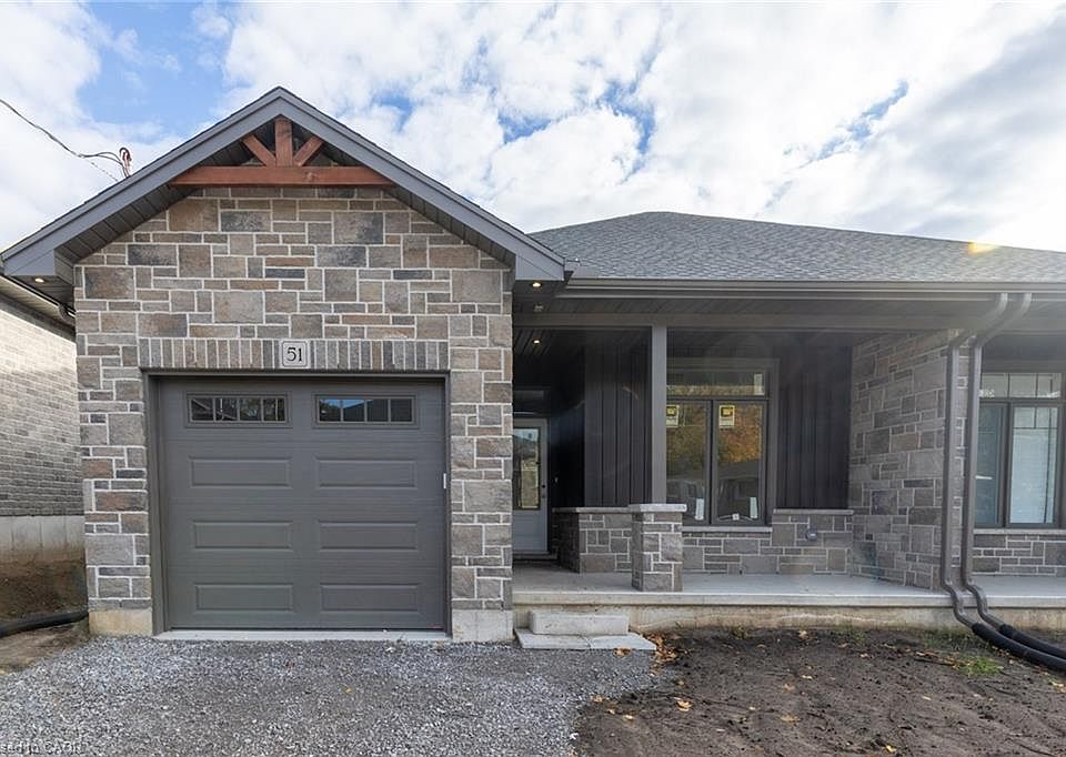 Welcome to 51 Norfolk St., Waterford. Whether starting out or downsizing, this 1266 Sq. Ft. semi-detached home is the perfect option! The perfect answer to having your own yard and your own home, at an affordable price. This is one of 3 remaining available units that are available on Norfolk St. These bungalow homes make living on one floor easy. From the covered front porch right to the back deck you will have all the comforts that a new home offers. Worried about noise from the attached neighbor?....Don't be! This custom home builder separates the units with a poured concrete wall for your added comfort and security. The open concept home has a large great room with gas fireplace and patio doors, adjacent to a dinette which flows right to the kitchen with custom cabinetry/quartz counters, under cabinet lighting, Island with seating, pot lights and more. A large primary bedroom has a walk through closet and 3 piece ensuite with tiled shower. The second bedroom can be used as a bedroom or a den and guests have access to the 4 pc main bath. Main floor laundry/mudroom is adjacent to the garage entry for your convenience. The unfinished basement has large windows and a rough in bath for your future development. Tankless water heater (owned), central air, forced air gas furnace, utility sink, sump pump and fiberglass shingles are just some of the features of this quality home. Construction is well underway. Call now! (taxes not yet assessed) Pictures are showing the progress, home under construction.