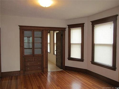 Wonderfully maintained 3 family home convenient to lots of restaurants and easy on/off 84. Hardwood floors are in perfect shape. Kitchen has a small pantry off to the side. There is a full bath with a bedroom one each side. Dining room has a built-in hutch and pillars separate it from the living room. Apartment has a shared front porch and a private back porch. Washer and dryer in the basement are for this tenant only. There is a little storage in the basement, but not much. Oil heat, hot water and electricity are responsibility of the tenant. Credit Check is a must New windows are being installed in whole apartment to help keep costs down. Ready to move in One parking spot is available behind the building. Tenant will use address 53 Oakwood.