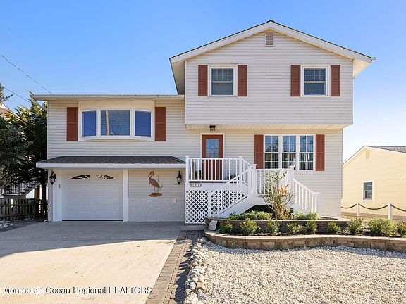 Welcome and discover the wonders of living on ''Osborn Island'' on the ''Great Bay''. You will be impressed when you enter this bayfront raised three level seashore style split-level with an attached oversized parking garage and unlimited storage space. The vinyl bulkheading- composite decking, two ramps & floating docks are on a deep-water lagoon with running water at dockside, enjoy crabbing, fishing, swimming & boating from you own backyard with the luxury of an additional driveway for winter boat storage. Boater's and fisherman's paradise ''no bridge to go under'' and only minutes to the inlet of the open bay to the intracoastal waterways. Experience the daily glorious sunrises & the amazing skyline from LBI to AC. Picturesque views of the historical crab island fishery-and multitude of captivating wildlife sightings (a definite conversation starter). Magnificent bay views from the open floor designed eat in kitchen/dining flowing with ceramic tiled flooring and the grandeur architectural inverted tray ceiling surrounded by recessed lighting. The sliding glass door provides access to the rear deck equipped with remote controlled overhead awning. Custom made 42-inch maple cabinets accented with deco molding, two built-in matching cabinetries provides ample storage for all your kitchen needs. Uniquely designed center island/breakfast bar equipped with SS double bowl sinks and dishwasher. Granite countertops, stainless steel appliances, built-in microwave above five burner gas range. Economical five zoned hot water baseboard heating and two zoned central air. The upper-level master bedroom offers a fiberglass privacy balcony deck with endless waterfront views, two additional bedrooms and full bath. Relax in the comfort and cozy formal living and family rooms with glimmering hardwood flooring. The bright & airy four seasons sunroom features wall-to-wall slider windows, free standing gas log fireplace, ceramic tiled flooring and sliding glass door with access to rear yard. Additional bath on main level as well as the den with ceramic tiled floors, direct access to rear yard and to the garage. Osborn Island coastal carefree lifestyle has much to offer with pristine sandy public beach that slopes gently into the serene waters of the Great Bay all yours for swimming, sunning and gatherings. Comfortable wholesome environment this home is ready for immediate occupancy call for your preview today.