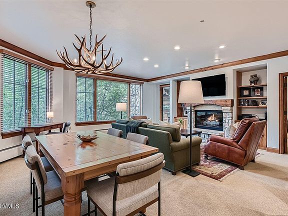 Ideal ski & golf condo. Elkhorn Lodge #202 offers a prime ski-in/ski-out location in the gated Beaver Creek Resort, perfectly positioned next to the Elkhorn chairlift for effortless access to the slopes and adjacent to the Beaver Creek Golf Club. This spacious 2-bedroom residence, each with ensuite bathrooms, also includes a third bathroom with a shower to accommodate overflow guests. After a day on the slopes, unwind by the elegant fireplace or enjoy après-ski moments on the oversized deck, surrounded by serene, snow-dusted aspen trees. Large windows flood the living spaces with natural light and offer picturesque winter views. Elkhorn Lodge, a boutique building of only 52 residences, is meticulously maintained and offers luxury amenities, including a ski locker room, fitness center, outdoor hot tubs, underground heated parking, and owner storage. A complimentary resort shuttle ensures seamless access throughout Beaver Creek and nearby Bachelor Gulch. Beaver Creek Village is home to fine dining, shops, art galleries, bars, and attractions such as the ice rink, ski school, and Vilar Performing Arts Center. Whether you prefer beginner slopes or advanced terrain, the resort offers something for every skier. The Beaver Creek Golf Clubhouse is next door, providing another wonderful amenity just steps away. This property is also a sought-after rental opportunity for owners looking to offset carrying costs with short-term rentals. Offered furnished and turn-key.