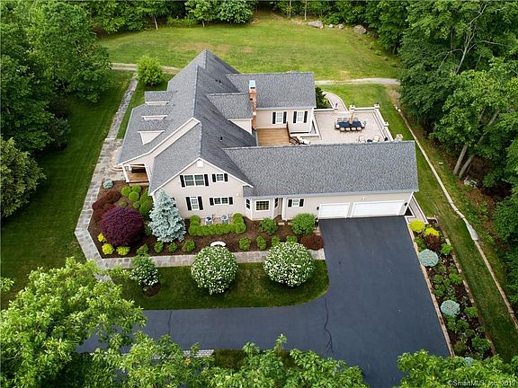 Call Pat Blanko 203-206-9194! SOPHISTICATED ELEGANCE! ** Custom 4 BR Col/Cape on 5.21 acres! ***Total 9 garage spaces!!*** includes a 2story 36x36 BARN w/staircase up to the finishable 2nd flr. Farmers porch welcomes you to the grand entry foyer w/columns, elaborate molding & hardwood flrs with inlay medallion. Sweeping open spaces, step down to the great room with stone fireplace and two sets of French doors to the deck; DR with tray ceiling, crown and picture frame molding and large transom windows streaming sunlight! The gourmet kitchen boasts custom cabinets, granite counters, center island breakfast bar, stainless steel appliances, hood, gas cooktop, double ovens, heat lamps for warming food and spacious breakfast nook! The LR (currently a billiard room) boasts crown molding and wetbar. The elegant main floor MBR suite features a luxurious full bath w/corner whirlpool tub, double sink vanity & separate glass door/tile shower. The top of the staircase finds a 2nd family room or office with open balcony and brick fireplace; three additional bedrooms, one with full bath. Hardwood floors throughout! Separate heating zones for room temp control. Enjoy sunsets from the front porch, or roasting marshmallows on the patio w/chimney (also wired for sound). Park-like setting. Also available are lots 33 and 47 Old Country Rd being sold separately. Perfect for horses, hobbyists, car enthusiasts, endless possibilities! Conv location near airport & major highways. *Check out the 3D tour! Call Pat Blanko 203-206-9194!