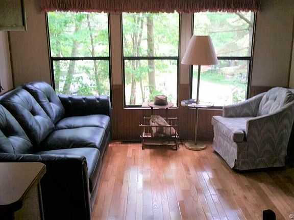 Unique opportunity to own your own land along (save $3,000 a year in rent with seasonal vacation home in fun & relaxing Sun Valley Spacious unit includes open family room, 12 x 35 3 season room, new low clearance shower just installed, outdoor firepit, large deck for relaxing and entertaining. Short walk to enjoy the amenities including restaurant/banquet room, activities, swimming & fishing in the spring fed, stocked pond, tennis courts, bocci and more. At the right price the sale includes furniture, golf cart, cover-it and tools. Shed has power Season runs April to October. Agent related to owner.