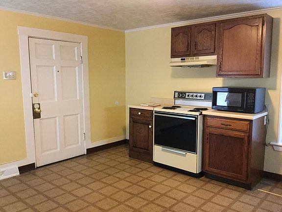 This apartment is a large one bedroom with loads of character. First of all it offers a front porch and a covered side deck perfect for barbecuing. The new bamboo floors in the large living room are gorgeous. The kitchen is eat in loaded with cupboard space, a built in antique hutch, and lots of sunshine. The spacious bedroom offers berber carpeting and built in storage galore. The utilities are very reasonable also. Central Air. New gas furnace and windows. Centrally located for all your needs. Because we have worked very hard to make this a clean and attractive home we ask that no smokers apply. Absolutely no pets please. Hopefully you will give our place a look. Thanks! Phone calls preferred! GPS will take you to the front of our historic building that we have converted into four apartments. Drive to the back parking space to see Apt A on the bottom right. After one year lease goes from month to month. Tenant responsible for utilities. Gas, Electric, Water, and Garbage Pickup. Owner pays sewage.