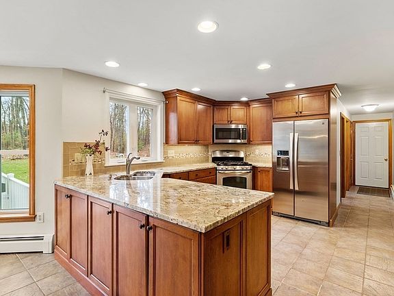 Beautiful colonial in sought after Groton neighborhood setting! Featuring open concept living space, 4BR's and 3.5 baths. Sun filled updated EIK with SS appliances, custom cabinetry, granite counters, tile flooring, gas cooking and breakfast bar. Kitchen opens to FR with cathedral ceiling, HW flooring and FP, formal dining/living room (currently a home office) both with HW flooring. Designated laundry room and ½ bath completes 1st floor. 2nd floor boasts four spacious bright BR's all with HW flooring, MBR has WIC and spectacular new spa style bath with custom glass shower, double sink and vanity with radiant heat! Lower level has beautiful bonus room perfect for entertaining, home office or family space with 3/4 bath. Exterior green spaces shines! Highlighted by private patio/hot tub, deck and manicured open green space. Sellers have taken exceptional care of their home including newer roof, updated kitchen and spa style master bath. 51 Overlook Rd a wonderful place to call home.