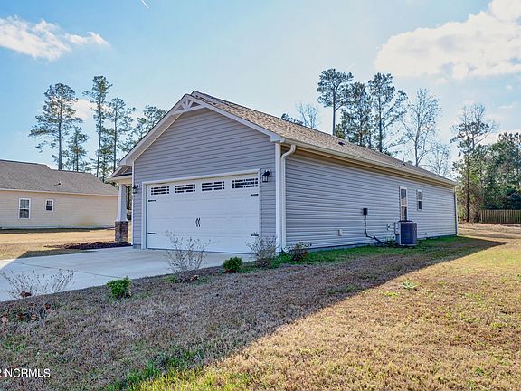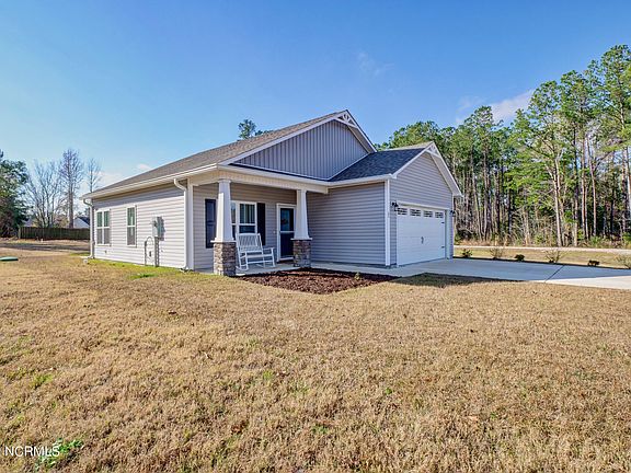 Barely 2 Years old, right outside of Hampstead and close to Interstate 40, This 3 bedrooms, 2 bath home sits on a half acre lot with NO HOA! The living area features LVP flooring, a vaulted ceiling. Kitchen features granite counters & stainless steel appliances, Including refrigerator. Master bedroom boasts a beautiful trey ceiling, walk in closet, private bath with double vanity sinks. Two-car garage provides room for storage, Other features include low maintenance vinyl siding, Low-E vinyl windows, 30 year architectural shingles, & programmable thermostats. Current owners added seamless gutters, Well filter, water filter system, and water softener, Touch activated kitchen faucet and window blinds. Washer & dryer are included as well.