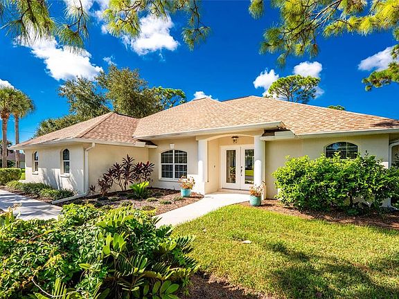 Under contract-accepting backup offers. Welcome to this Rotonda West Home Offering Breathtaking Sunsets by the Pool, Plenty of Privacy with an Additional Lot, and a Welcoming Floor Plan That Makes Entertaining a Breeze! This home offers space for everyone and the structure is in the X flood zone. With three bedrooms and two bathrooms in the main house, plus an 1BR/1BA attached guest suite and is being sold furnished so you can move right in. As soon as you pull in, the oversized corner lot with its tall trees and mature landscaping surrounds you with privacy, and driving down the driveway to the two-car side-entry garage, you can really feel how tucked away this home is. Decorative columns and double glass doors welcome you inside to the open plan design, where oversized tile floors throughout, vaulted ceilings, and multiple French doors opening to the pool fill the home with natural light. The chef’s dream kitchen features plenty of white cabinets with some glass fronts and soft close hinges, under cabinet lighting, tile backsplash, Corian countertops, a center island, large breakfast bar that opens into the great room and additional French doors that give you easy access to the pool area. This home also has a fantastic laundry room space with built-in cabinets, a desk, and laundry sink making it a fantastic multipurpose room. The primary ensuite bedroom is a true retreat with a tray ceiling, French doors that open to the patio, and double walk-in closets. The spacious bathroom features a dual-sink vanity with dressing area, a soaking tub with a unique pull-out shower head, and a walk-in shower with a tiled glass-block privacy wall. The two guest bedrooms each offer unique charm, with one featuring custom built-in bookshelves, a window seat, and a cozy table nook, while the other showcases a bright bay window. Both include walk-in closets, and the guest bathroom offers an oversized vanity along with a tub-shower combo accented by glass doors. Just across the pool sits the guest suite, a perfect spot for visiting family or even your own private retreat. This studio has glass French doors that open to the pool, tile flooring, a walk-in closet, ceiling fan, and a handy kitchenette with sink, refrigerator, and custom cabinetry. There is also a full bathroom featuring a single vanity with and a tiled walk-in shower, making the suite comfortable and practical. Florida living is all about the outdoors, and this space delivers. Picture yourself floating in the heated saltwater pool, sipping your favorite drink, or gathering for dinner under the oversized screened and paver lanai as the sun goes down. Additional highlights include all water lines replaced in 2025, a new pool pump motor in 2025, fresh exterior paint in 2024, gutters with leaf guard, a water softener system for the kitchen sink and refrigerator, individually zoned A/C system, a well-fed irrigation system, and a security system. Living in Rotonda West means access to five premier golf courses and clubhouses where you can meet friends for dinner and drinks, whether or not you play golf. The community is also close to beaches, shopping, pickleball courts, restaurants, world-class fishing, marinas, and nearby parks and walking trails perfect for enjoying nature. Do not miss this rare opportunity at 51 Par View Terrace, contact us today for an appointment.