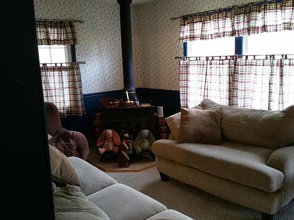 Peaceful comfort with many upgrades. Home has fenced back lawn, wood burning stove, baseboard heaters and propane wall heaters as backup for central heating system. Storage shed and 2 car garage.
