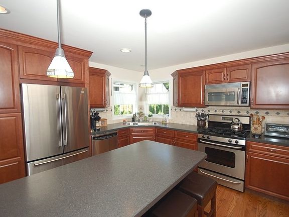 Pristine Colonial built in 2005; country kitchen w/maple cabinets, stainless appliances; HW floors; sliders to raised patio & gardens; finished basement rec room with half bath and storage. .Interior of home will be painted; 1st floor hardwood floors will be refinished before move-in -- (photos are from previous listing).