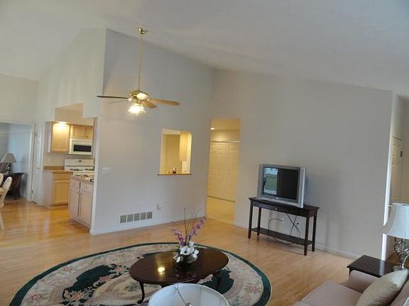 Picture perfect living. desirable English Square 55+ community. Cathedral ceilings in great room and dinette, plus vaulted ceiling in the formal dining/den. Hardwoods and Pergo throughout. Interior just painted. Bisque kitchen cabinets. Wheelchair ramp in garage. Back up generator. Appliances negotiable. HOA maintains the exterior of the home including the roof, siding, trim, landscaping, lawn care and snow plowing.