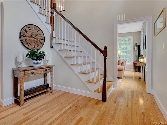 YOUR IDEAL HOME is in this oversized traditional style Salt Box Colonial. A home of traditions with timeless style. Open the door to a fabulous double story foyer & walk through the thoughtful floor plan. Warm and inviting family room centered by a wood-burning fireplace. Sunlit Kitchen boasts granite counters, 42-inch birch custom cabinets, center island, spacious dining area . Step through the French doors to a maintenance free deck where you will sit with your coffee in the morning and be surrounded by nature in your private yard with over 4 acres. Enjoy all the holidays with family & friends in the formal dining room & living room. Work at home? The first-floor private office has amazing built-in book shelves with, French doors to private deck to take your breaks on. Hardwood floors throughout with classic black and white tile in the kitchen, mudroom and bathrooms. Upper level boasts 4 bedrooms & 2 full baths. Main bedroom with very large walk-in closet and custom built-in dressers. Functional mud room/laundry room on first floor. Impress your friends in the authentic pub in lower level, you will be the envy of the block! Two more finished rooms in lower level with plenty of natural light. So many details to notice from the 6 Anderson windows, Fiberon Decks, stone patio, traditional onion lamps on the outside, brick front walkway, and beautiful stonewall that border the landscape, makes this classic home top notch. All set on a peaceful cul-de-sac. Move-in condition!
