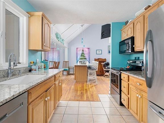 This lovely 3-bedroom, 2-bath home in Charlestown offers space, privacy, and comfort on 2.67 wooded acres. The main level features a kitchen with stone countertops, stainless steel appliances, and an open layout to the dining room. The spacious dining area includes built-in cabinetry and overlooks the private outdoor oasis. The living room boasts hardwood floors, a pellet stove, and soaring cathedral ceilings—perfect for cozy evenings or entertaining. Upstairs, the primary suite includes a balcony overlooking the living area. The lower level provides a bedroom, laundry area, and abundant storage. Outside, enjoy a two-car detached garage with additional storage. The expansive decking leads to a newer above-ground pool and is perfect for get togethers. Enjoy your cool Fall evenings soaking in the hot tub. The surrounding acreage offers peace, privacy, and nature while still being close to beaches, highways, shopping, and schools. Whole house generator included! Please take note of the low Charlestown taxes! This Charlestown gem is move-in ready and waiting for you! This home truly has it all—comfort, charm, and a prime location.