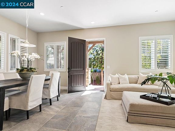 Built in 2014, this is a rare opportunity in Orinda Grove as it is the first single story resale, presenting carefree living close to downtown Orinda & featuring a spectacular interior that has been beautifully appointed with many custom upgrades. This 3-bedroom home is one of the most desirable in Orinda Grove due to its location, high 10’ ceilings, pristine condition & fab floor plan on one level. The design is sophisticated & stylish, perfect for today’s California luxurious but comfortable lifestyle. Great scale, extra tall, raised panel interior doors, stunning large tile floor + wide plank engineered vinyl flooring in the bedrooms, deep baseboards, custom plantation shutters, ample storage throughout. Private two-car garage with interior access. Charming wraparound entry porch. Kitchen with rich cabinetry & center isle, stainless KitchenAid appliances including 5 burner gas range. The primary suite is a true retreat with lovely bathroom with double vanity, tub, large shower and private w.c. Laundry room. The Orinda Grove grounds feature mature trees, pretty pathways, and are adjacent to a park & play fields. This prime location is conveniently close to downtown Orinda with Orinda Community Center, Library & Orinda Park nearby + Bart & 24. Top-rated Orinda schools.
