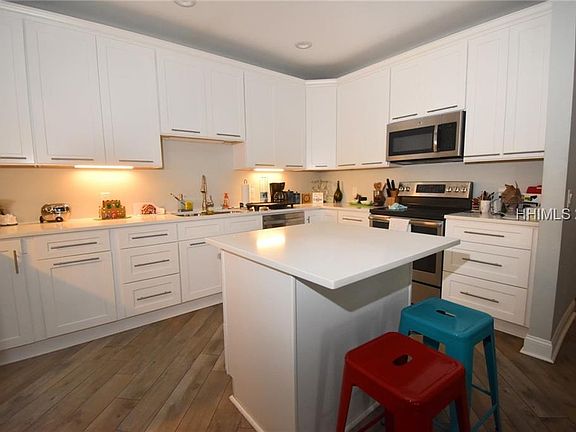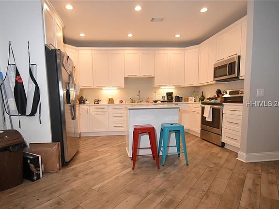 Here's the nicest and most modern Pine Forest Village home ever constructed. Owner is a builder and this was his personal family home. Unique front entertaining deck, 1 car garage, amazing kitchen, beautiful wood-look tile floors and travertine in the baths. Master bath has a beautiful zero-entry shower. Huge rec room, 2 bedrooms and bath upstairs that could be a separate mother-in-law suite or perfect for an extended family. Neighborhood is minutes from Hilton Head via the Bluffton Parkway. A quick golf cart ride to old town Bluffton! And Alljoy Landing is just down the street!