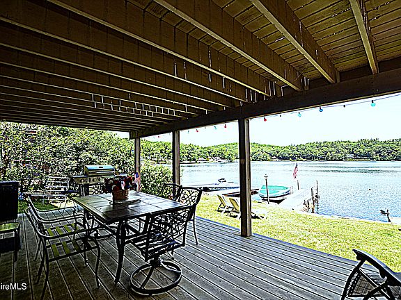 This is all about the water. Walk in the door and be wowed by a wall of windows looking over the lake towards Berkshire hills. Guests say, ''It's like you're on a ship''. Open the sliders and step onto the deck, see the dock & private swimming area. Back inside, the dining & living areas are integrated with a well-designed kitchen featuring an island & hardwood cabinetry. A very comfortable space for gatherings with a view of the water from anywhere in the room. At the quiet end of the house is the primary bedroom with walk in closet. Upstairs are 3 bedrooms - 2 with lake views, plus an entertainment/overflow sleeping room & full bath. In the lower level an informal rainy day eating area opens to a lower deck close to the water's edge. Interior/exterior contents & furnishings negotiable.