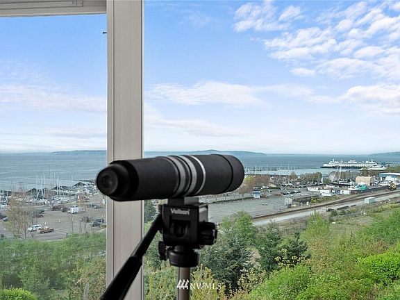 A warm welcome awaits you in this rare end unit with a full view. This unit has been thoughtfully maintained and improved by the current owners for 9 years! Everything about this space lives large, from the master bedroom to the award-winning remodeled bathroom; 2017 Chrysalis National Award for Best Bathroom Remodel under $50,000! Relax in the open-concept living room and kitchen. Let the sun fill the room from the surrounding windows that offer 180 degree views of the water, mountains, and waterfront. Motorized shades operate at the push of a button for total privacy. The SW-facing balcony is the perfect place to grow some plants, or get yourself some vitamin D. The two owned parking spaces include a 220v metered electric car charger!