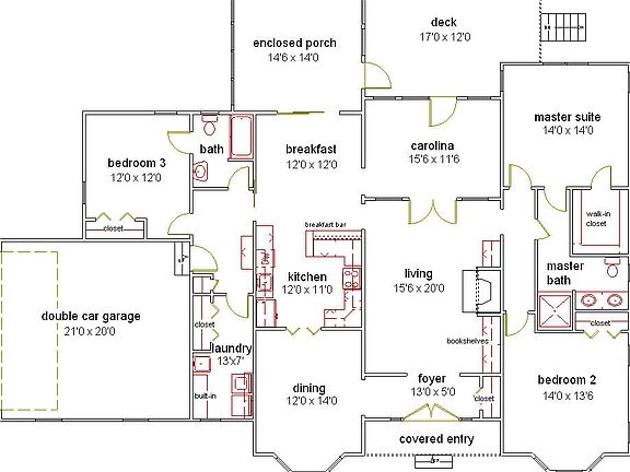 - Rooms: Utility/Laundry, Kitchen, Bedroom 2, Bedroom 3, Carolina Room, Eating Space, Entry/Foyer, Master Bedroom, Garage, Living Room