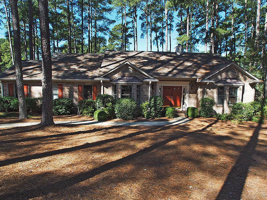 Located in beautiful Pinewild Country Club on the 3rd hole of the Azalea Course, this custom one story brick home has great curb appeal and has well maintained, mature landscaping - perfect for the buyer looking for a smaller home on the golf course in this great community! This home offers a very livable floorplan with lots of great spaces. There is a Carolina Room overlooking the rear deck that can be accessed from the living room as well as an enclosed four season screened porch with EZ Breeze windows so this attractive space can be used all year long. The living room has a cathedral ceiling, center fireplace with built-in bookcases, two skylights and double French doors opening to the Carolina Room. There is a formal dining room with bay window,