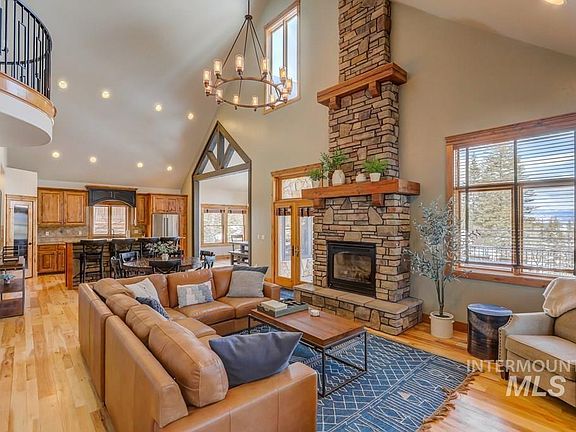 Newly updated luxury home in Pinnacle Estates at Tamarack Resort. This 7 bedroom property is perfect for entertaining family and friends. The spacious kitchen opens up into the dining and open concept living room featuring abundant sunlight with its southern exposure and new Trex deck. Newly painted, all new luxury furniture, light fixtures and ceiling fans, railings, TV’s, refrigerator, vanities and additional closets Two en-suites upstairs, guest room on main level, and three guest rooms downstairs, including a large bunk room. Play Billiards, enjoy a movie or play in the Theater Room with a stage, use the built in wet bar, or go outside to enjoy the expansive lawn with fire pit. Featuring a completely turnkey one bedroom apartment with kitchen above the detached garage, with a separate entry to enjoy privately or rent out. New roof, high energy heat pump with zoned heating, and injected insulation. Turnkey home is located on the groomed Pinnacle Trail system for cross country skiing, biking and hiking.